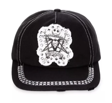 Jack brings his ”misfit love” and metal studded style to this twill baseball hat. No bones about it, the raw edges and contrast stitching make this cap spokky cool.